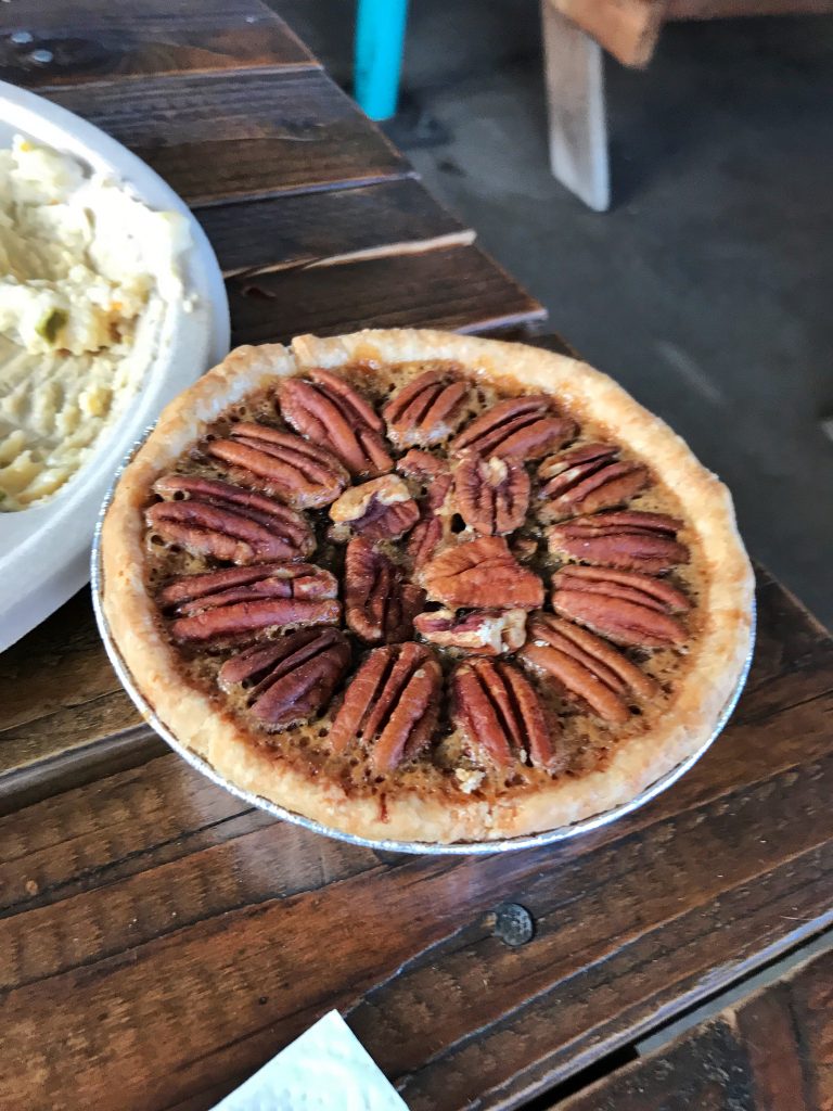 Clyde and I, honoring our Weight Watchers diet plan, took a more conservative route, splitting a pulled-pork sandwich and a hand-sized smoked pecan pie: