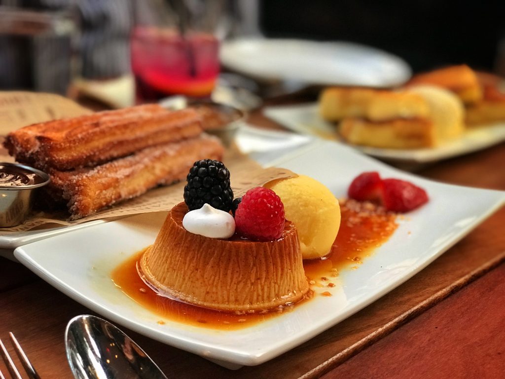 About the time we were falling into food comas, Jesus returned to the table with churros (plus sidecars of dark chocolate and dulce de leche) and flan paired with passionfruit ice cream. And this was my first time to try torrija — in this case, a caramelized brioche bread accompanied by turrón ice cream (a flavor stolen from those almond nougat Christmas treats so popular in Spain) and honey.