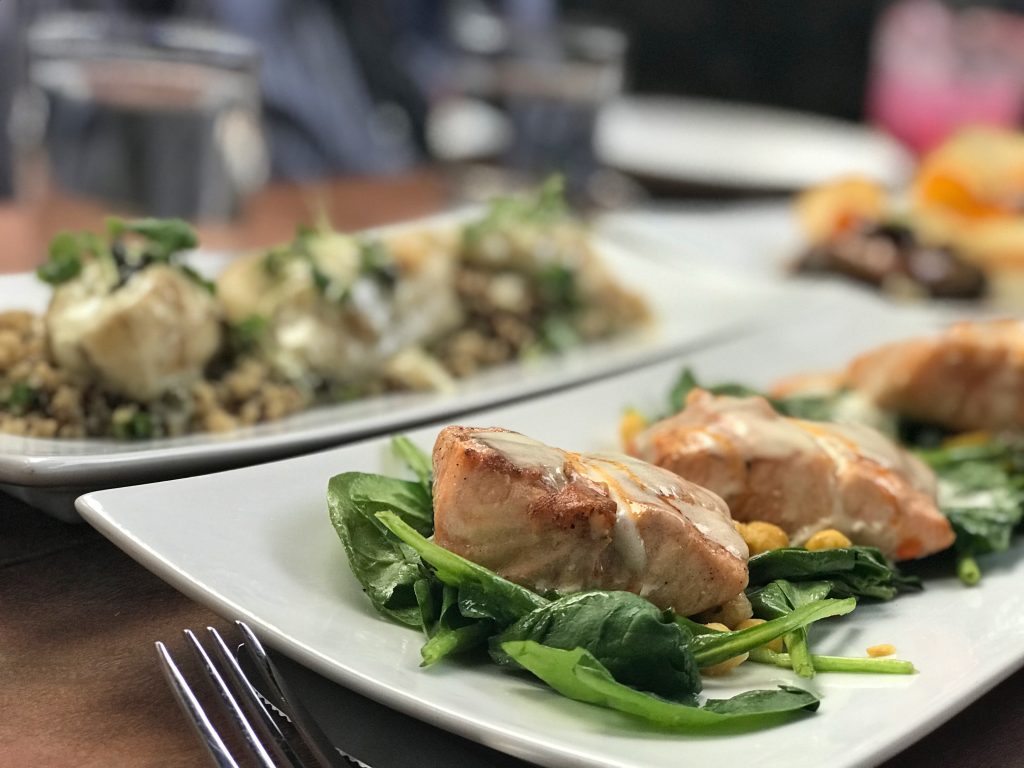 For my entree, I chose the salmon — I’m counting Weight Watcher’s points, you know. Listen: this is no ordinary plate of salmon. Is the secret the very judicious drizzle of lemon cream? Whatever the trick, the salmon was, for me, the star of the show (and how often, in Midtown Atlanta, do you get to say that?).