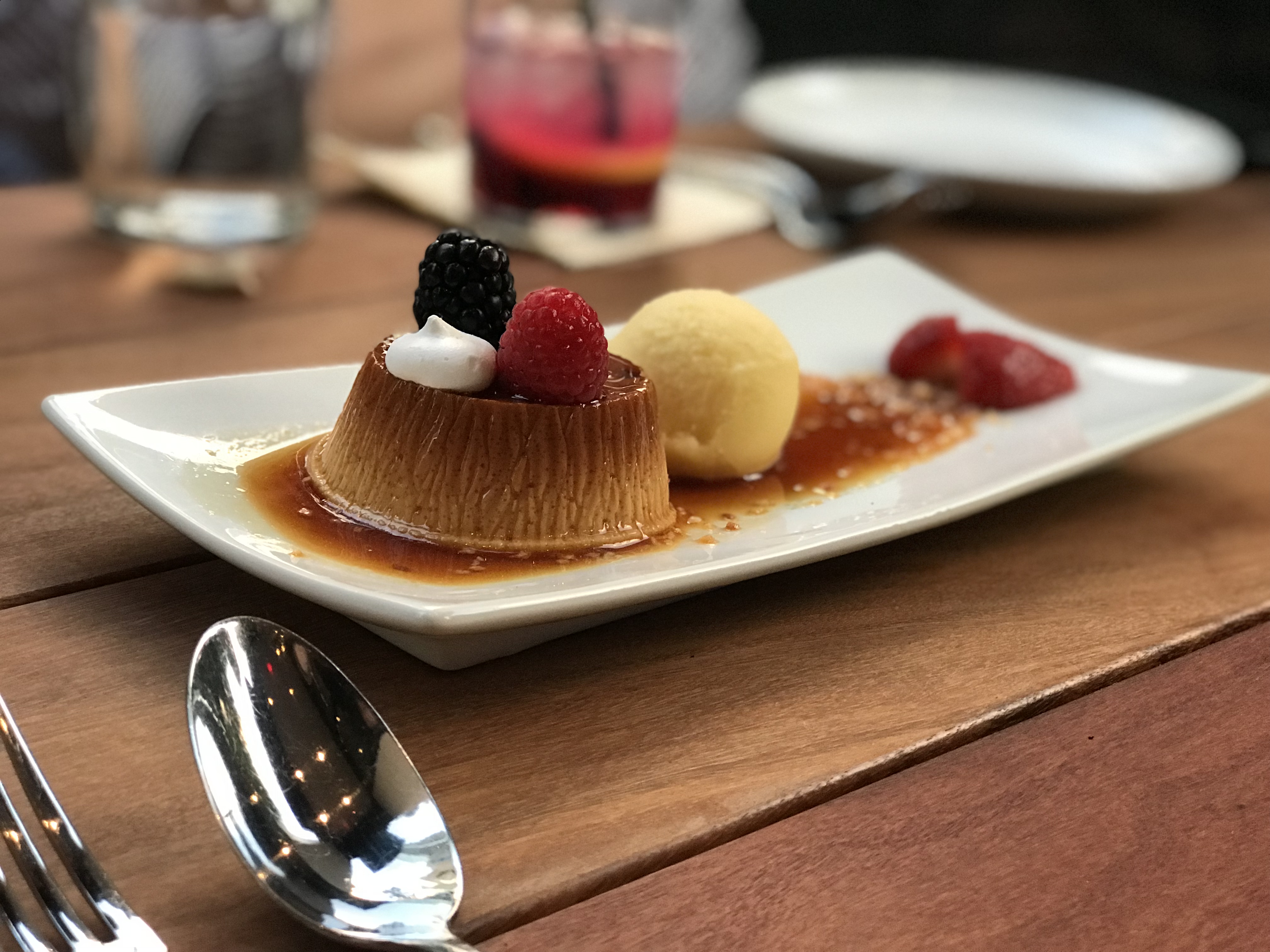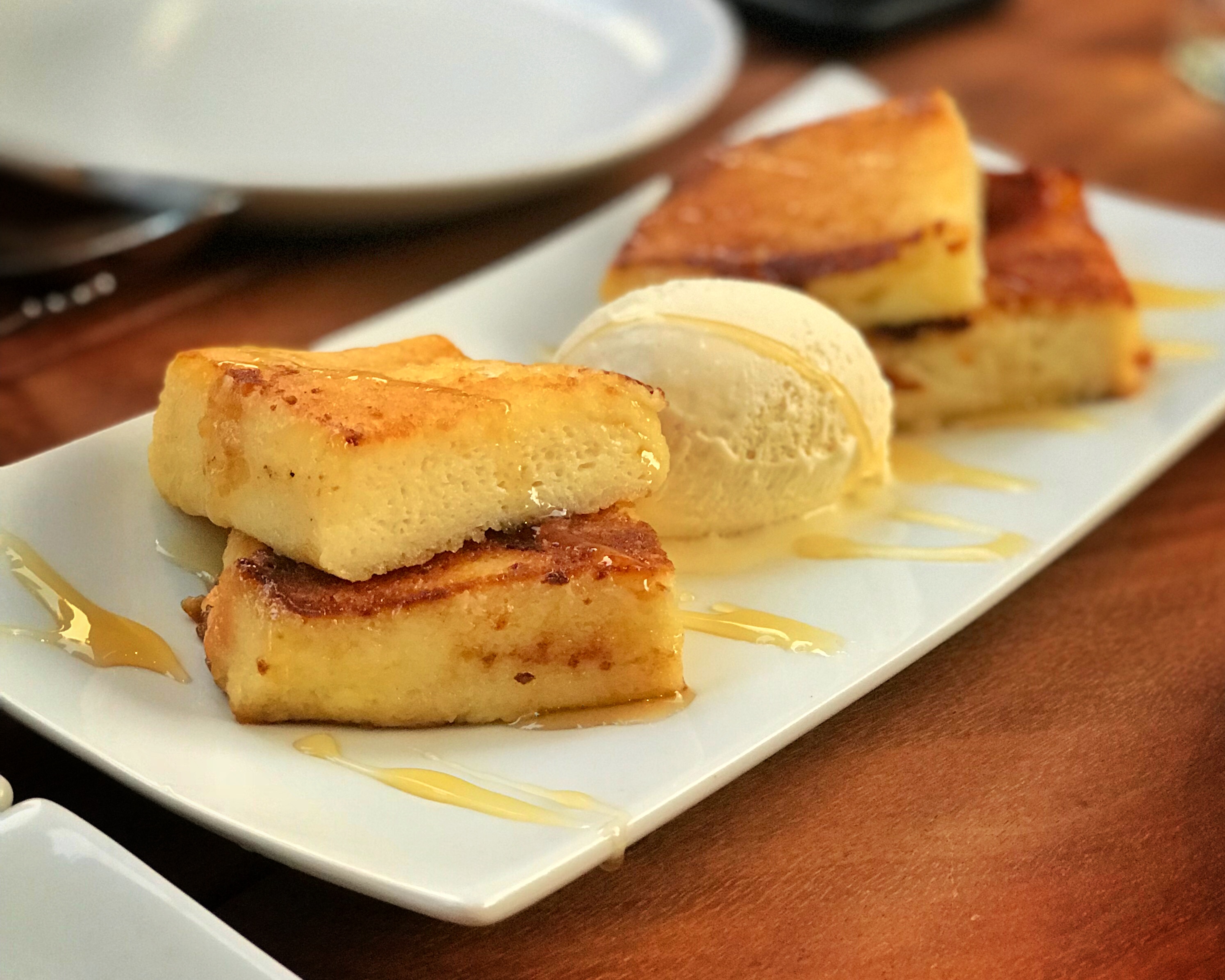 About the time we were falling into food comas, Jesus returned to the table with churros (plus sidecars of dark chocolate and dulce de leche) and flan paired with passionfruit ice cream. And this was my first time to try torrija — in this case, a caramelized brioche bread accompanied by turrón ice cream (a flavor stolen from those almond nougat Christmas treats so popular in Spain) and honey.