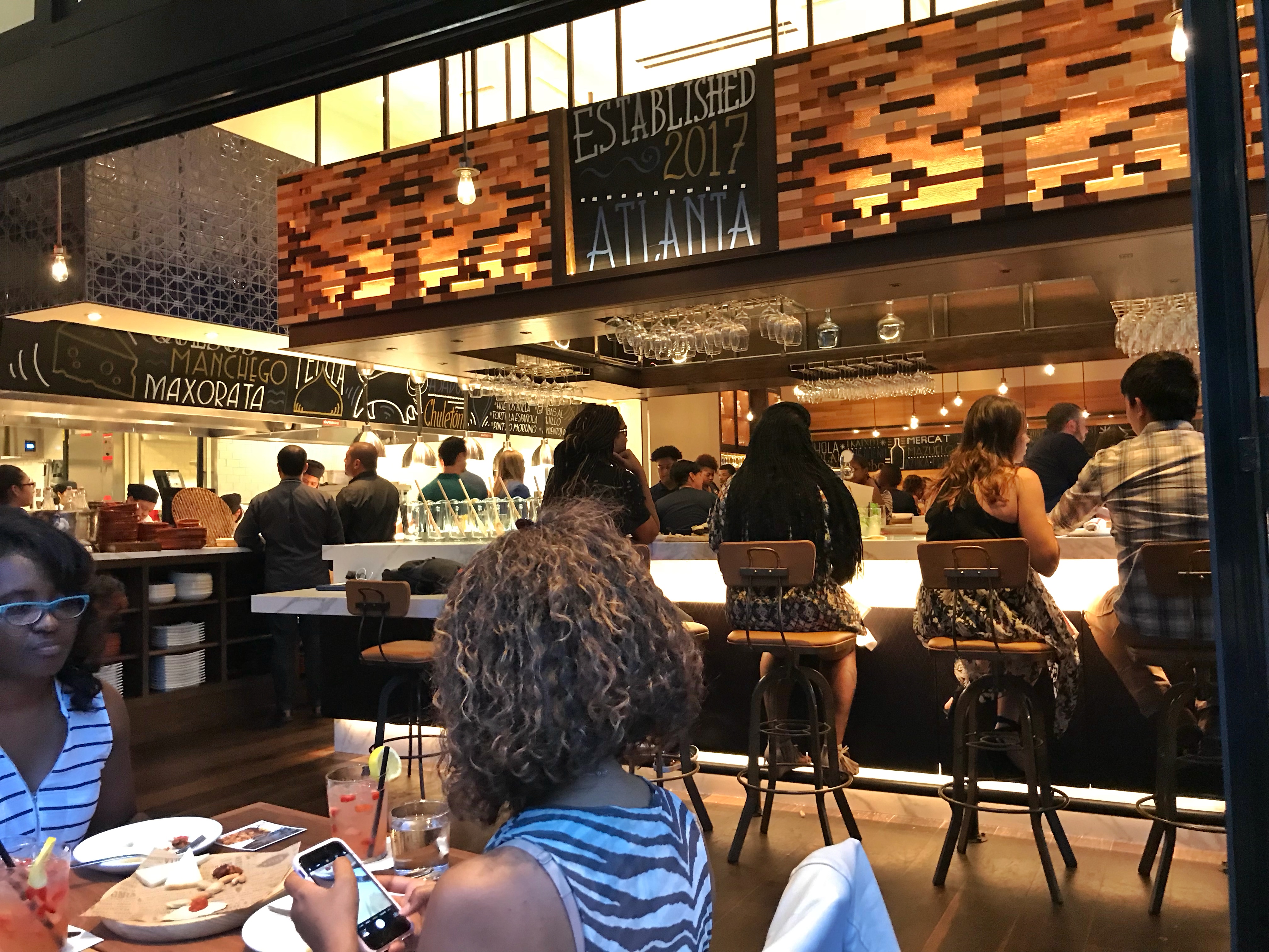 Something about the spirt of Bulla Gastrobar (in Midtown, at the intersection of West Peachtree and 11th Street, across the street from RA Sushi and tucked between the Federal Reserve Bank and Burger Fi) recalls the essential spirit of that boisterous, lively foodie experience in Spain. Bulla manages to be urban but warm, cloistered but sprawling, and casual but swanky. Achieving all this while serving artfully-prepared, deeply satisfying food is something to shout about.